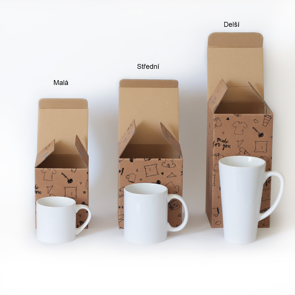 Dárková kartonová krabička vhodná jako stylové balení na menší hrnky jako malý hrnek, plecháček, keramikáček nebo hrnek lungo s potiskem, které chcete věnovat jako dárek. Krabička je vyrobena z pevného kartonu. Jednoduché a originální dárkové balení. Zasíláme v poštovní krabici, z které krabičku s hrnkem můžete rovnou darovat.